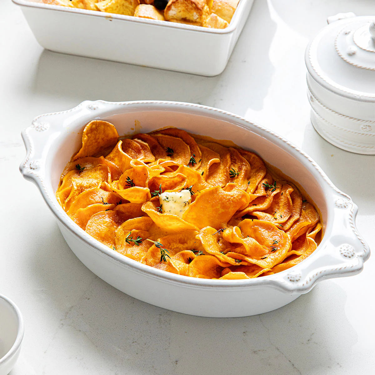 From Juliska's Berry & Thread Collection- Taking your bubbling berry crisp from your oven directly to the table for a pretty presentation is so effortless, Shakespeare himself would write sonnets about it.