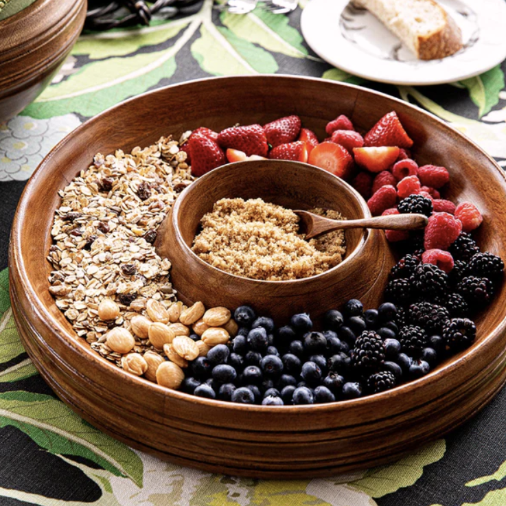 Elevate your chip and dip game to something more special with this hand-turned mango wood server that exudes natural beauty and casual elegance. A staple-piece for any entertaining enthusiast to keep on hand to serve a crowd with style, from holiday gatherings to family game night.