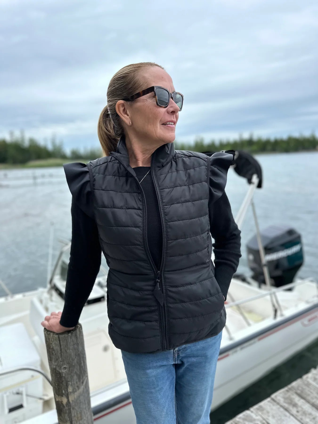 Black Maggie May Ruffled Shoulder Vest