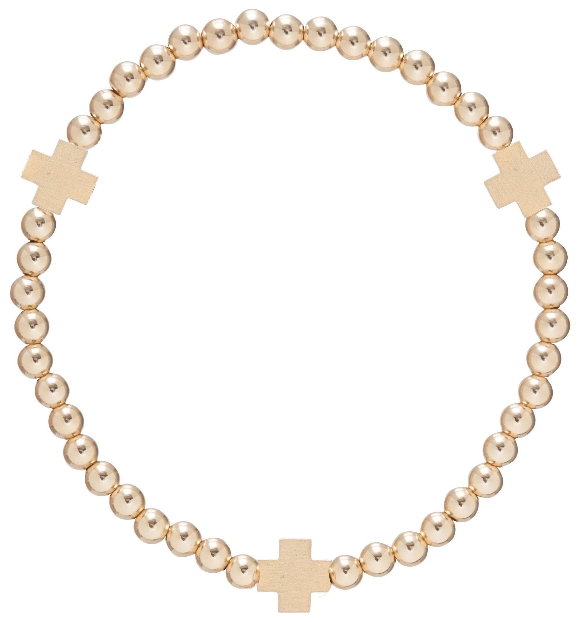 - Made with 4mm, 14kt gold-filled beads with a plated matte gold cross charm.