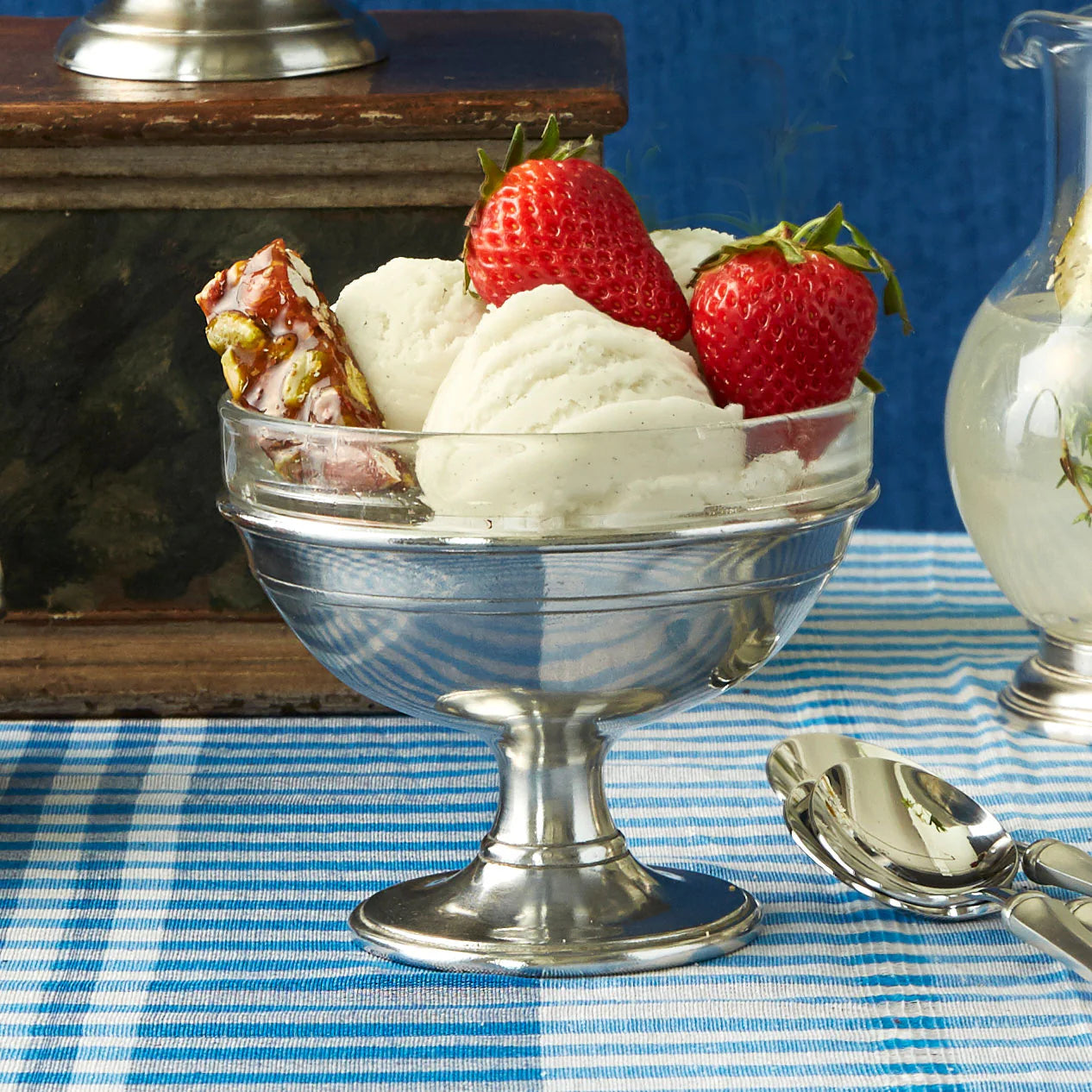 Ice cream never looked so inviting. This glass and pewter dessert dish is an elegant way to put the finishing touches on a great meal. Or fill it with olives or nuts at cocktail hour.