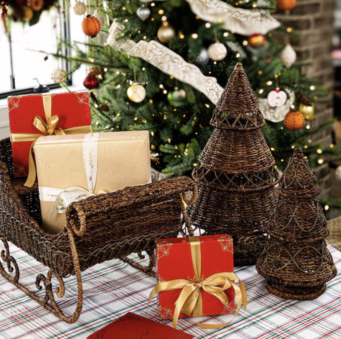 Decorate tables, shelves, and fireplace mantels with a beautifully hand-woven tree—a chic spin on the traditional evergreen. This fabulously unique decorating piece infuses natural texture and warmth to any space and is especially striking when clustered with various sizes to create a festive forest that lasts all season long.