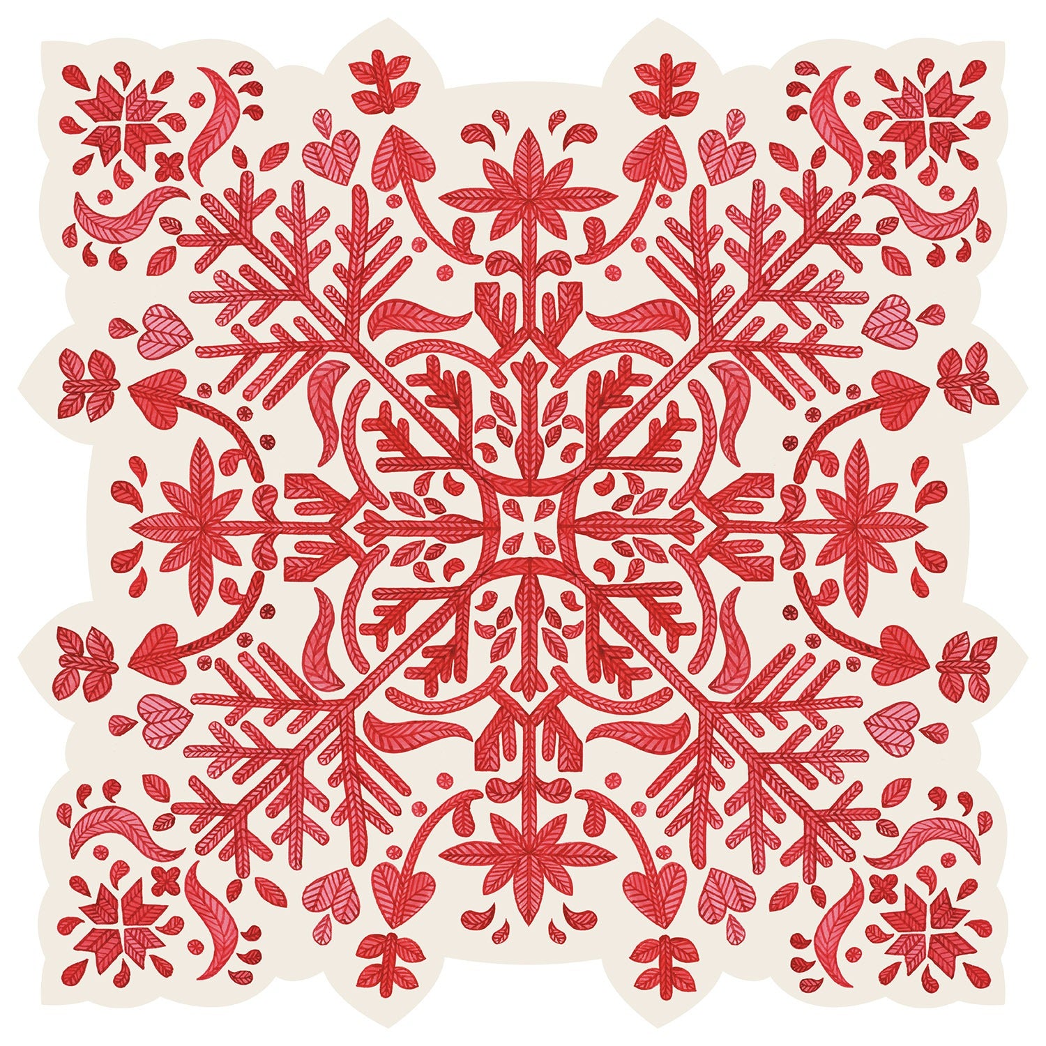 The Die-cut Fair Isle Snowflake Placemat is a bold and bright way to combat the winter blues! This versatile piece works multiple ways on the table, square or turned, and also makes great giant snowflake decor for winter gatherings hung as bunting or scattered down a buffet. These paper placemats add an elegant touch to any table scape. Designed and printed in the USA on FSC certified, recycled content.