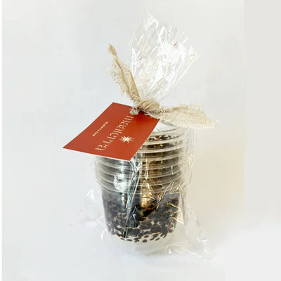 Materra's compostable single-use 12-ounce cups for cold beverages offer unmatched style, sustainability, and function. Elegantly shaped, their cups are decorated with designs that coordinate with their etched palm leaf plates to elevate the dining experience.