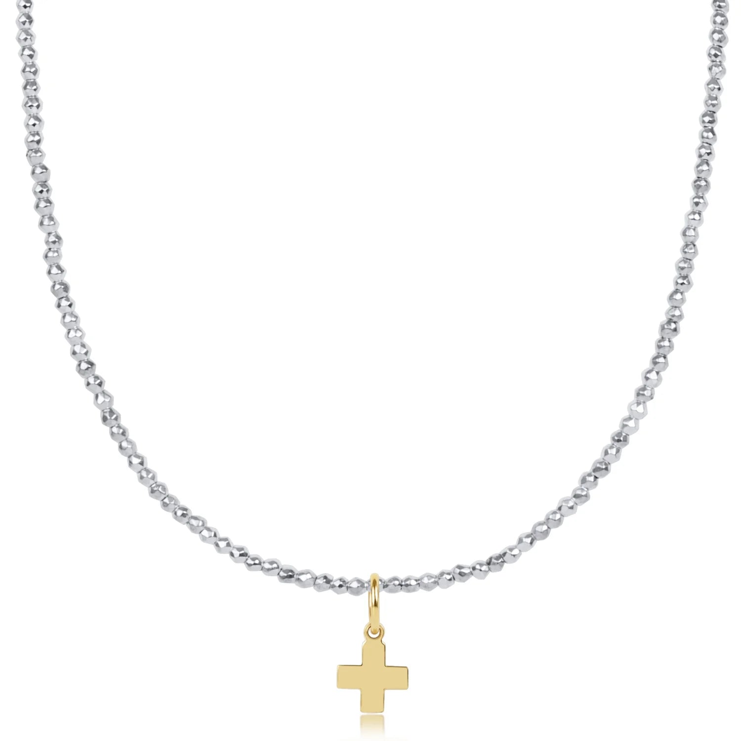 enewton 17" Choker Bright Silver Faceted Hematite 2mm Bead Signature Cross Gold Charm