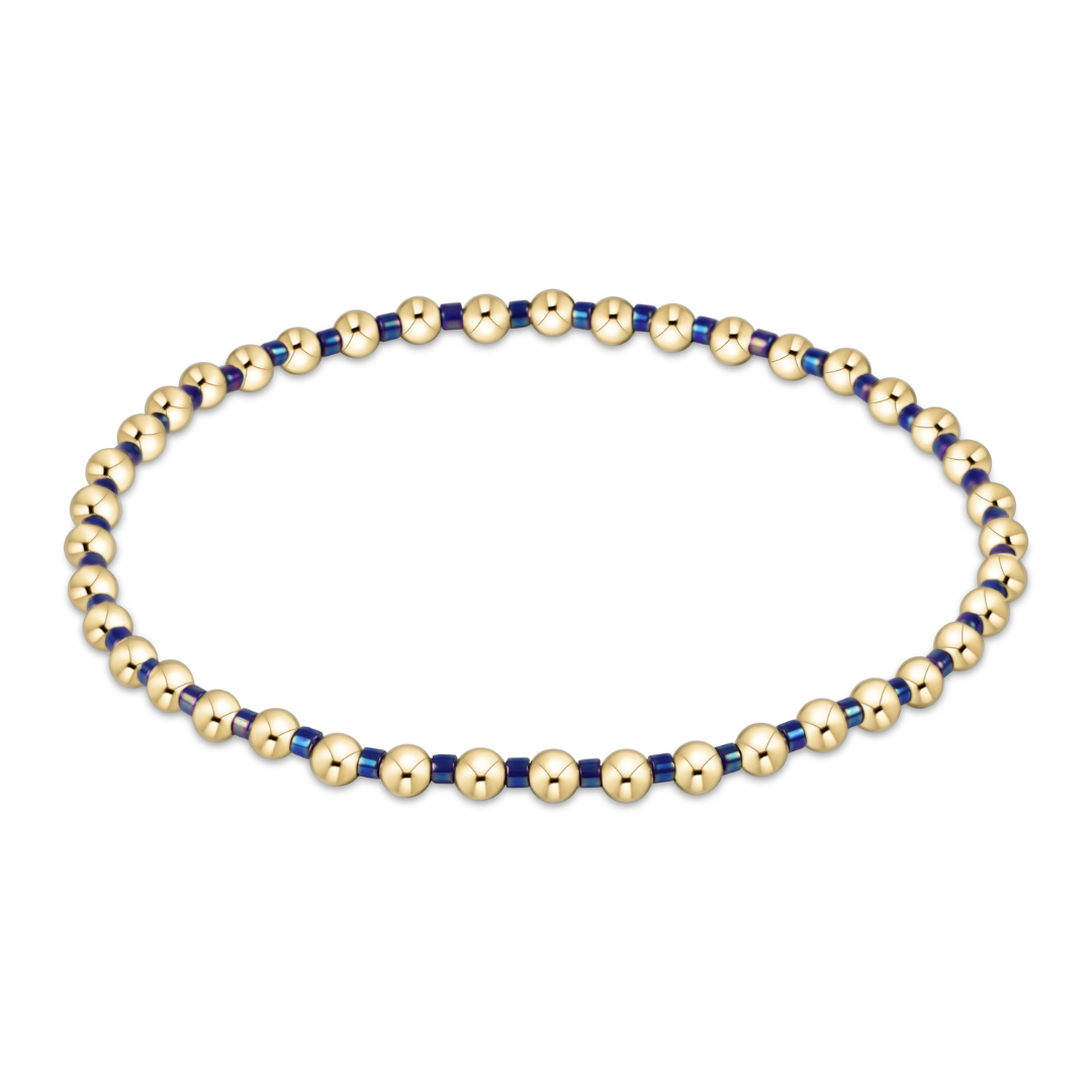 This beaded bracelet is perfect for layering with the rest of your enewton stack! The Hope Grateful pattern is a wonderful way to introduce a little color to your gold ensemble. This metallic blue is perfect for a denim-filled fall!