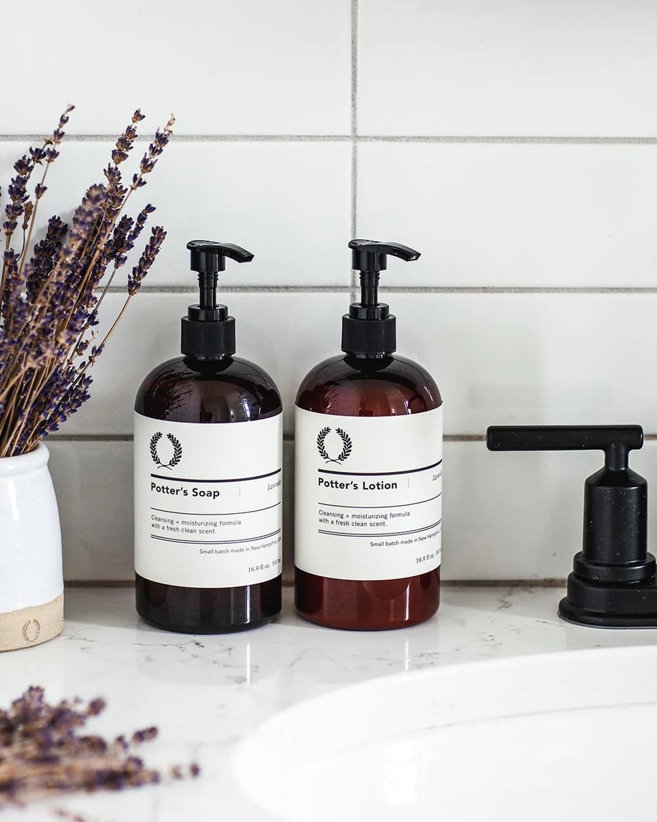 HAVE YOU EVER WONDERED HOW POTTERS KEEP THEIR HANDS SO CLEAN AND SOFT AFTER WORKING WITH CLAY ALL DAY? WELL, LOOK NO FURTHER. WE CREATED A COLLECTION OF SOAP AND LOTION TO KEEP YOUR HANDS FEELING SOFT, MOISTURIZED, AND OH-SO CLEAN! TAKE IT FROM US, WE KNOW HOW TO GET MUD OFF.