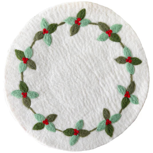 Add a lovely touch of trailing mistletoe and berries to you holiday table. Alternate with the candy stripe felt placemats or use them at every place setting.