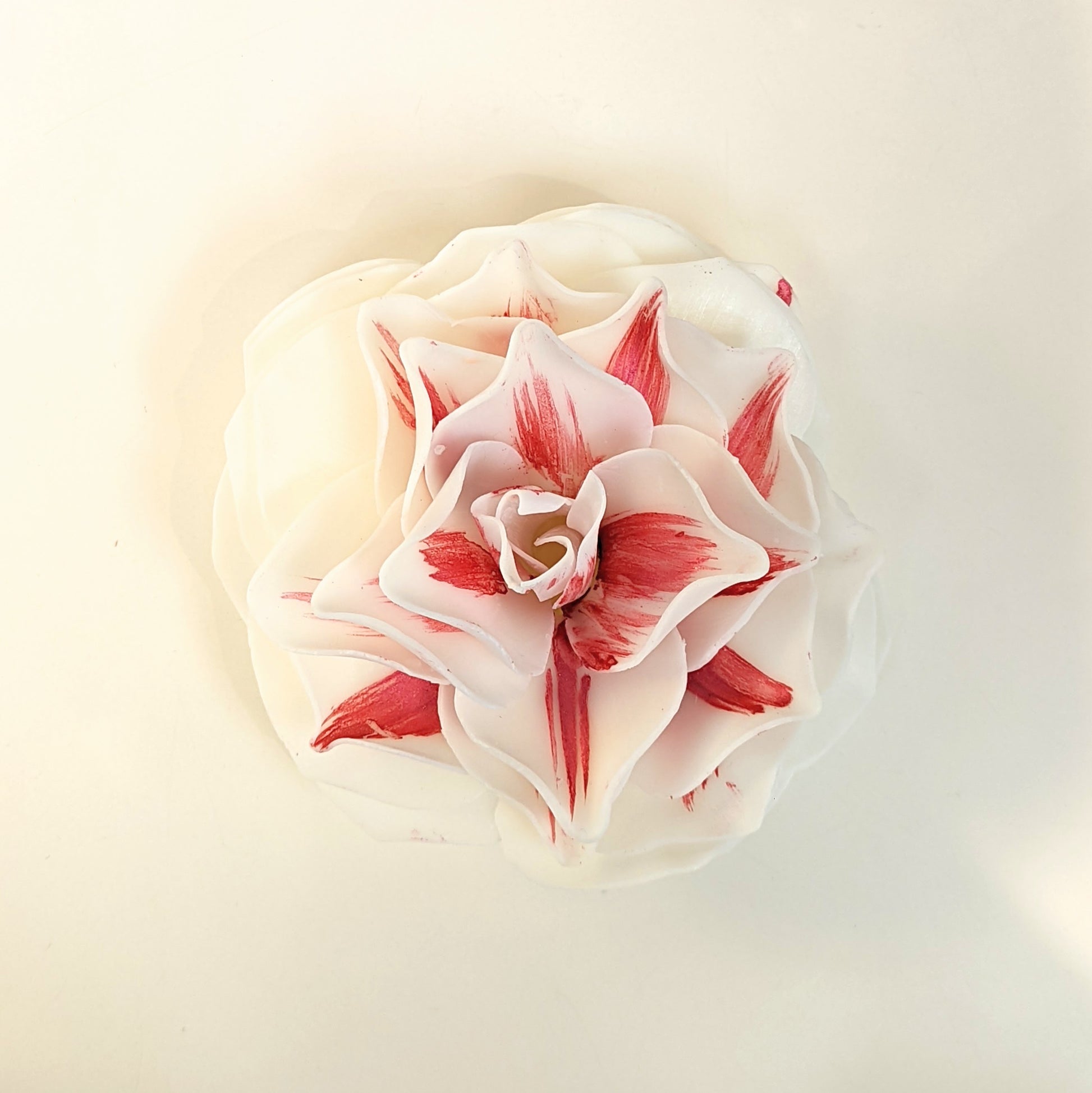 One meaning of the amaryllis is "strength and determination". The rich, red variegated color is striking and realistic of the brightly colored, beautiful amaryllis flowers that grows during winter. It takes heart to be determined, and we love this strong flower. Each flower is hand-painted with bath & body color. Blooming Christmas through Valentine's.