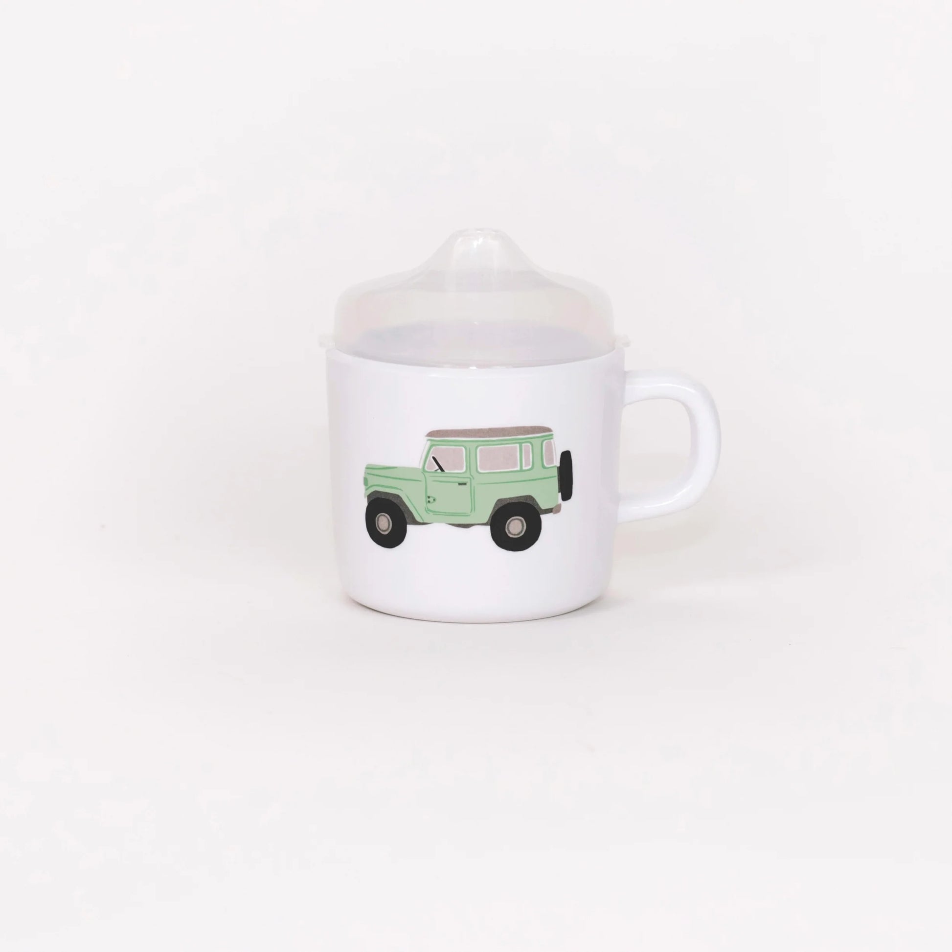 Little ones and grown-ups love this sippy cup for babe featuring a classic Landcruiser FJ40 in mint green. Helmsie's Creative Director, Karla, illustrated this truck inspired by her husband's dream car that now sits in their driveway. Every child, and most Dad friends, want to take it for a spin when they visit. Mamas and Dadas alike will appreciate this cup's sweet color and classic Americana appeal. A coordinating adult mug is also available or you can buy them together in our Two of Kind set.