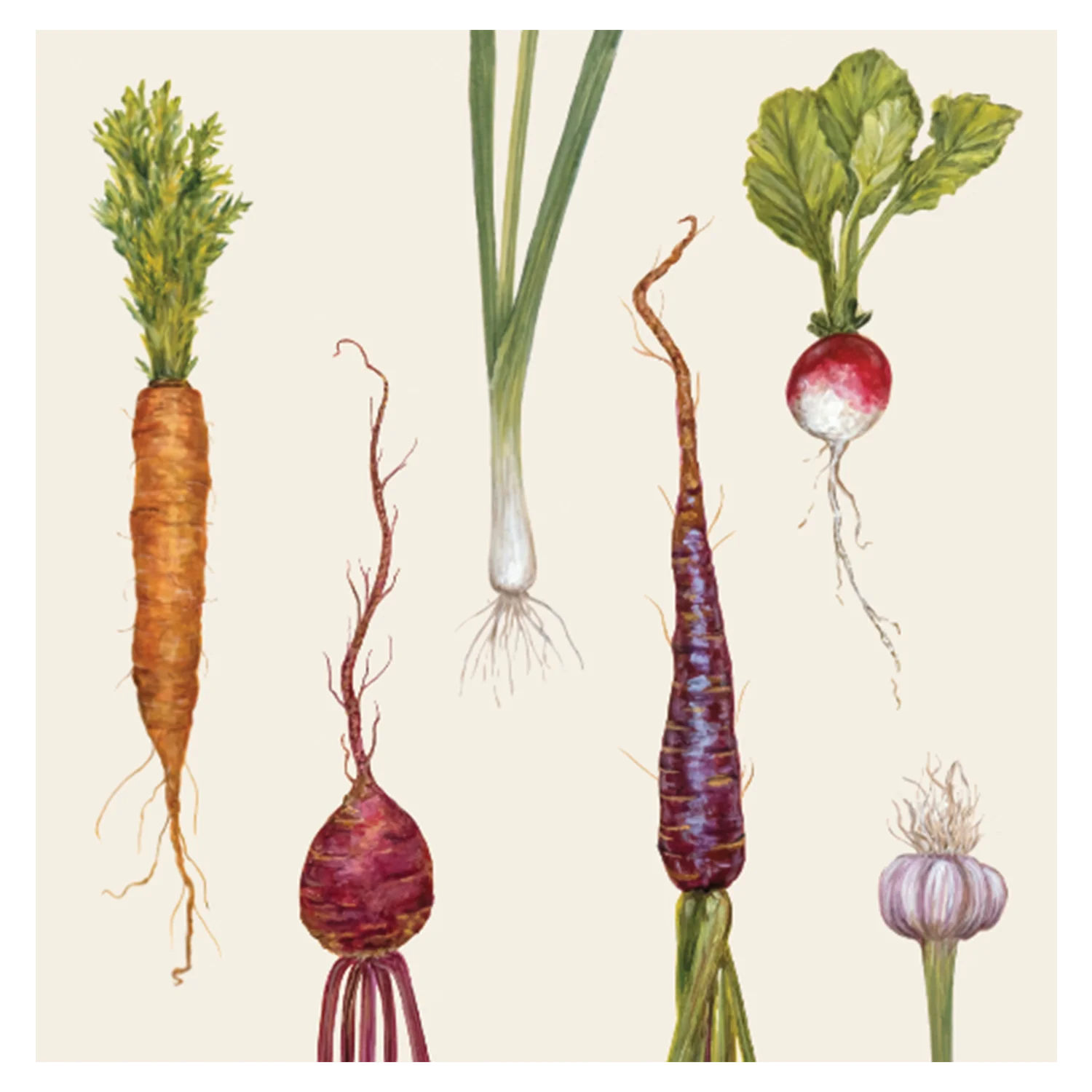 Created in collaboration with artist Vicki Sawyer, these Farmers' Market Napkins feature some of our favorite harvest vegetables.