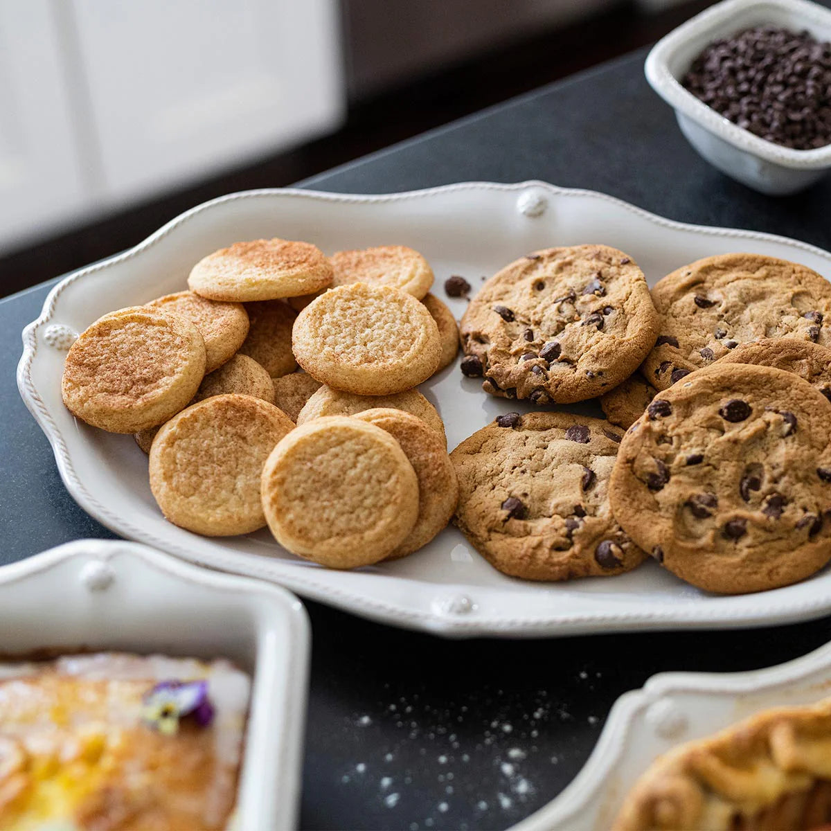 From the Berry & Thread Collection - Rimmed with a simple thread and adorned with a sprinkling of berries, this iconic dinnerware collection embraces the historic motifs of our Bohemian glassware. This 16” platter, with a subtly scalloped edge is perfect for serving a few, or a feast and goes seamlessly from oven to table.