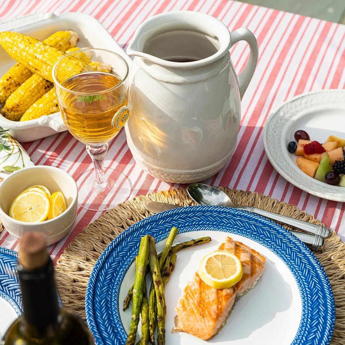 Adorned with a ring of subtle rope detailing, this versatile pitcher is perfect for tableside water service or a bouquet of your favorite fresh flowers.