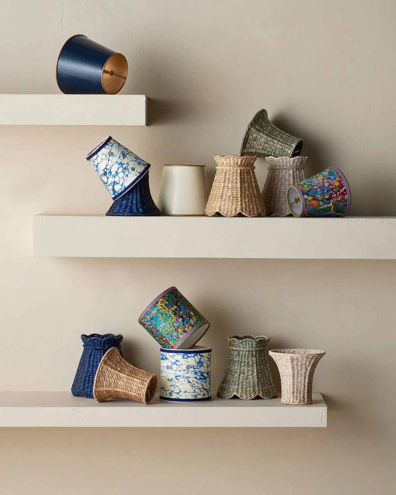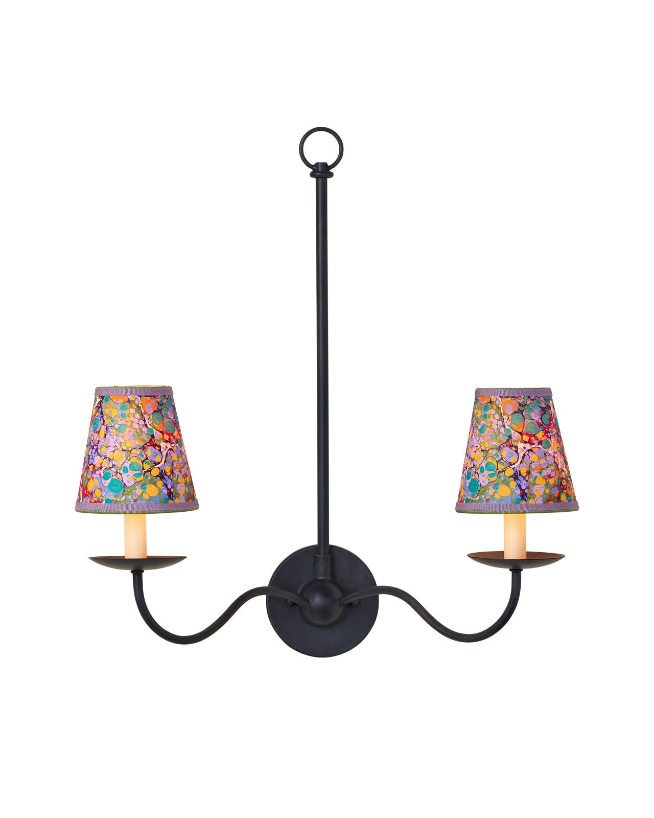 Petite shades are an easy way to bring added style to a space while also introducing color and texture, particularly when they are made from artisanal marbleized paper and ornamented with two layers of grosgrain ribbon. The Marble Multi-Color Paper Tapered Chandelier Shade has a bold pattern in multi-colored hues that was achieved by a New England atelier. Patterns will vary slightly due to the nature of the marbleizing process.
