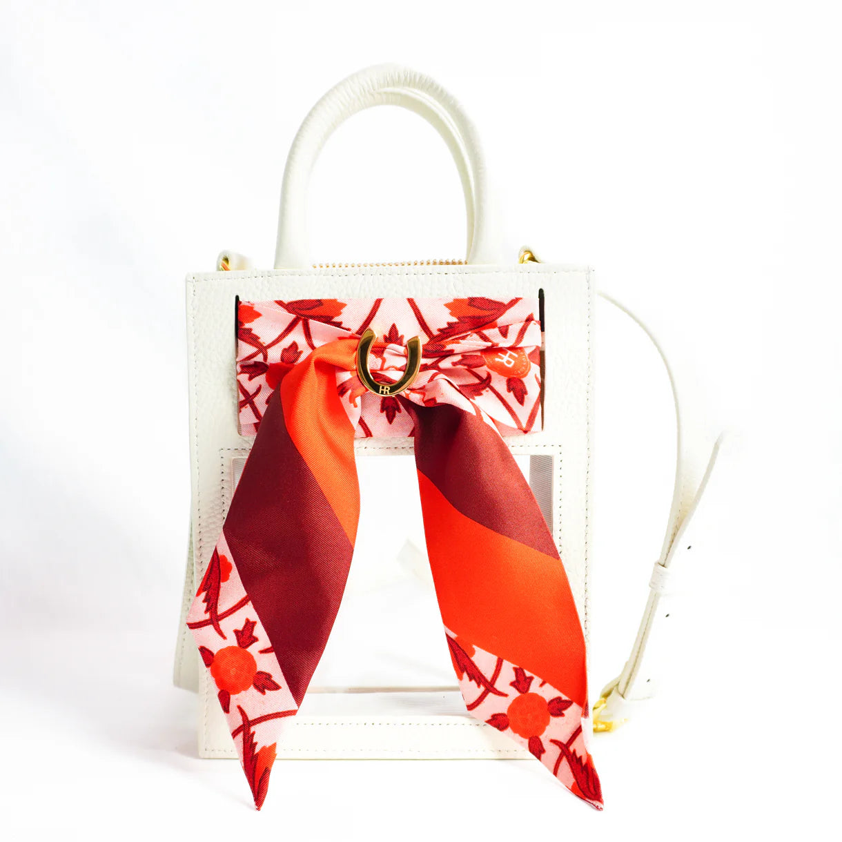 Gameday has never looked better. Our new Mini Calista Clear stadium bag is the perfect combination of high street chic and clear bag compliance. The custom-designed Twilly scarf creates a natural buffer between prying eyes and all inside. Zip through security in no time, and turn all the right heads on the way.