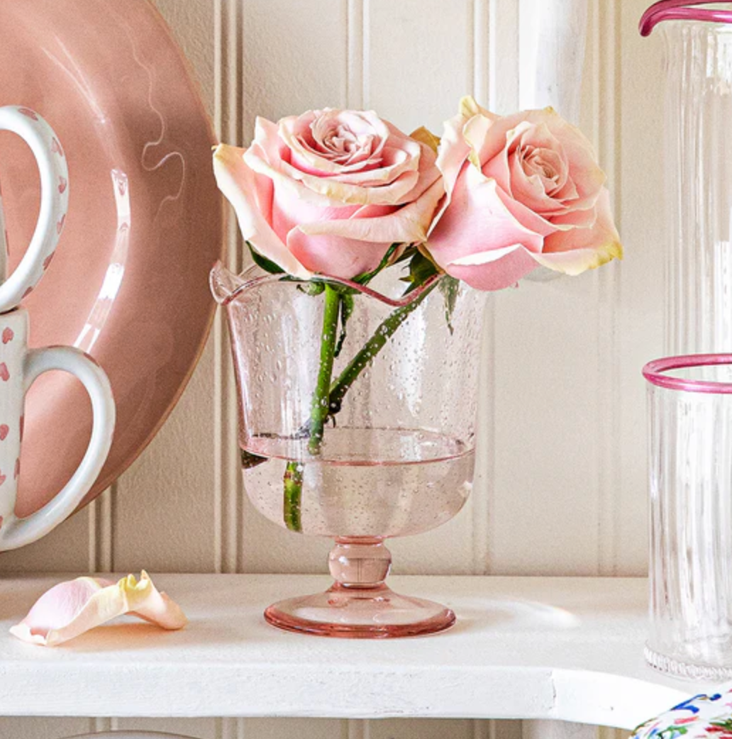 As a delightful centerpiece, in pairs on the mantel or in clusters—this eye-catching hurricane brings a splash of whimsy and a pop of color to any space. Inspired by the traditional bubbly glassware from Provence in southern France, this perpetually effervescent statement piece is handmade of sturdy mouth-blown glass with a beautiful pedestal base and a subtly ruffled rim.