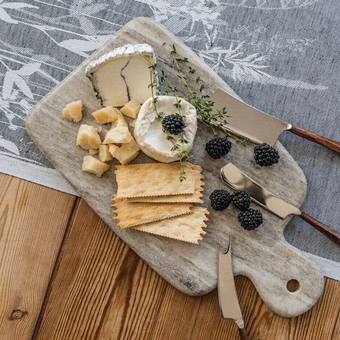 This beautiful marble slab is handcrafted start to finish, from the initial stone-cutting to the final polish. Made of 100% natural marble with inherently unique textural variations, this stunning, cool-to-the-touch surface is ideal for cheese, hors d’oeuvres and delicate desserts.