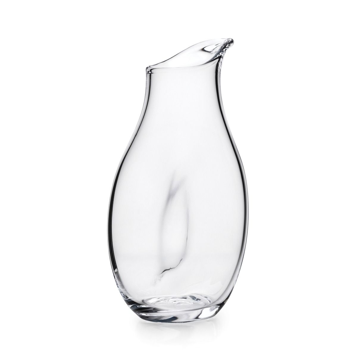 A simple ethereal form. This cloudlike carafe is a pleasure to hold with side indentations in place of a handle. Ideal for fresh-squeezed OJ at brunch or atop your desk as a gentle reminder to drink your daily eight.