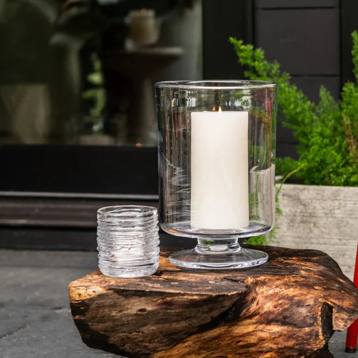 Frozen in winter, flowing in summer – Simon Pearce's Echo Lake Collection is inspired by the constantly changing rivers, streams and waterways of Vermont. In a bold interpretation of the craft, master glassblowers nimbly wrap fine strands of glass around a round base to form the unique, natural silhouette of each tealight candle holder. All the more stunning when arranged in a glowing cluster.