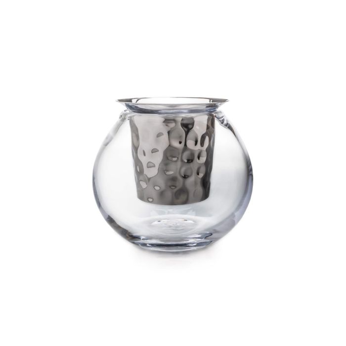 An entirely new take on the ice bucket that’s as visually stunning as it is functional. The custom hammered stainless steel sleeve fits perfectly into our gleaming glass Hampton globe silhouette. Fill the latter with ice, slide in the sleeve, and keep your wine chilled – and dry – using this gorgeous (and genius) mixed-media piece. The deep bowl does double duty as a terrarium or rose bowl. This new classic is already earning its place as a signature piece.