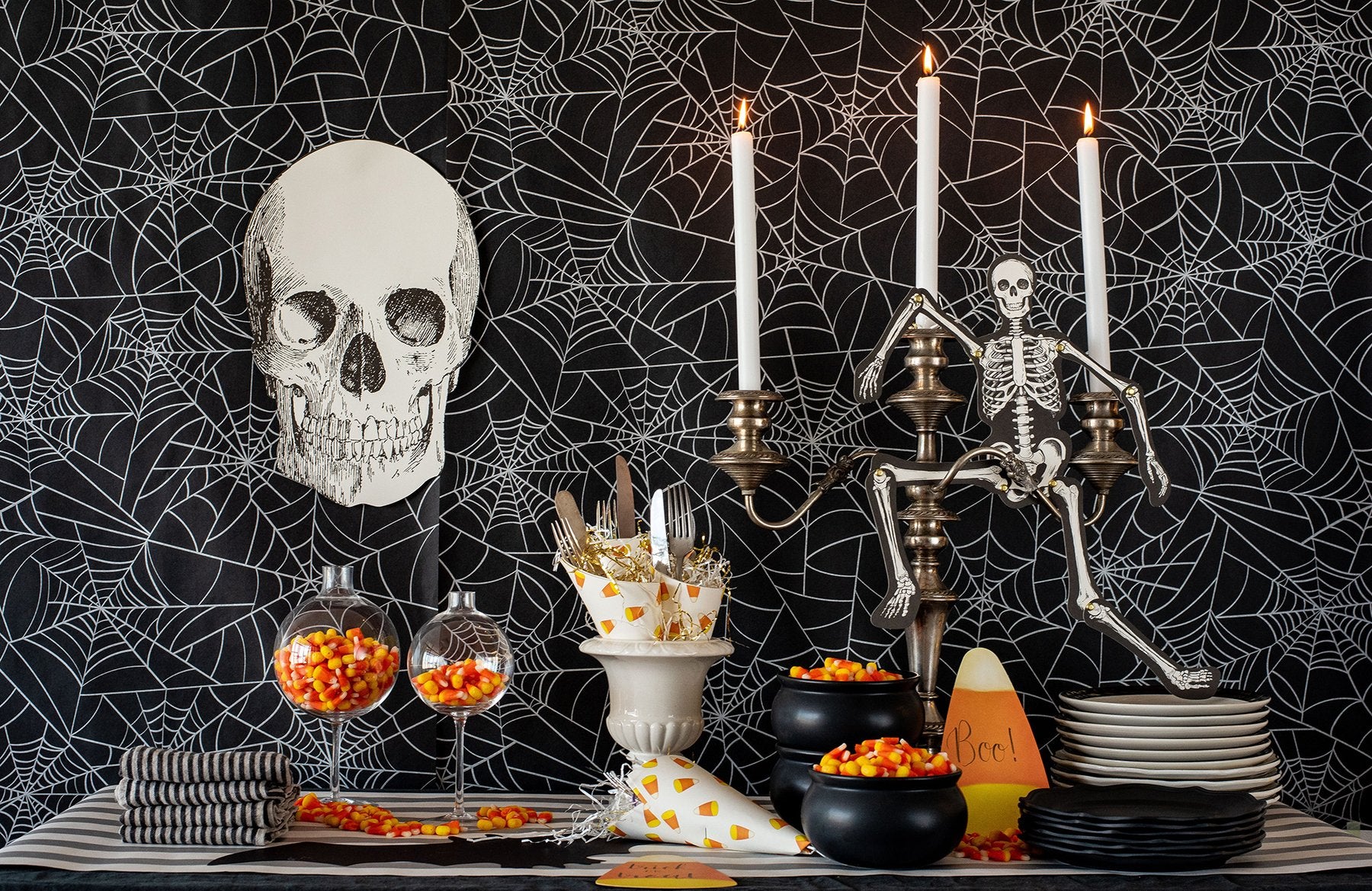 Create an extra spooky table scape with Hester & Cook's fun Spiderweb Table Runner. Layer with their Die Cut Skull placemats and Candy Corn placemats for more fun. Want to create a creative photo opportunity, just hang this runner on a section of wall and let the fun begin!