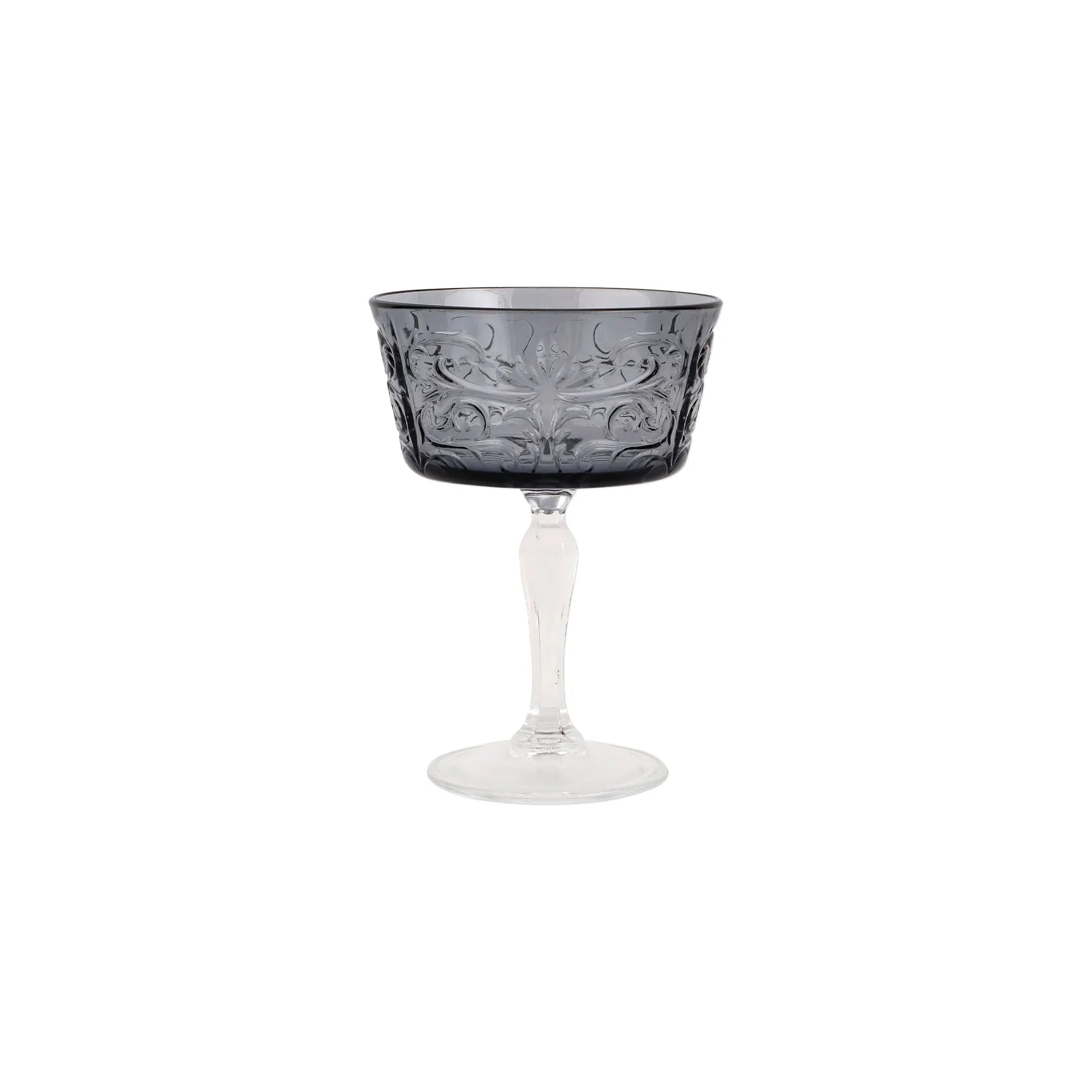 The artful etchings, stately shapes, and rich color of the Barocco Coupe Champagne Glass honor Italy’s 17th century Baroque period and bring a gracious grandeur to your gatherings.