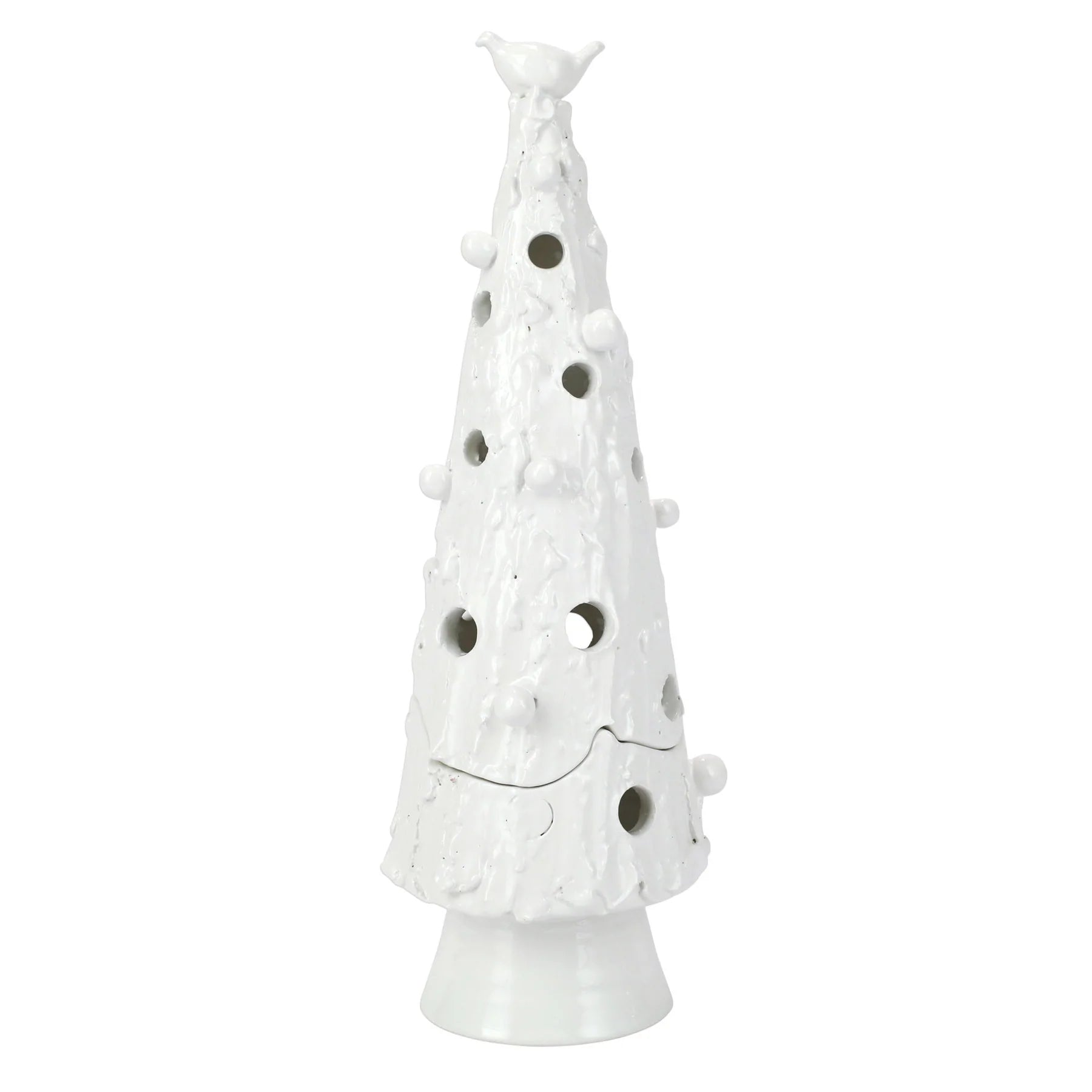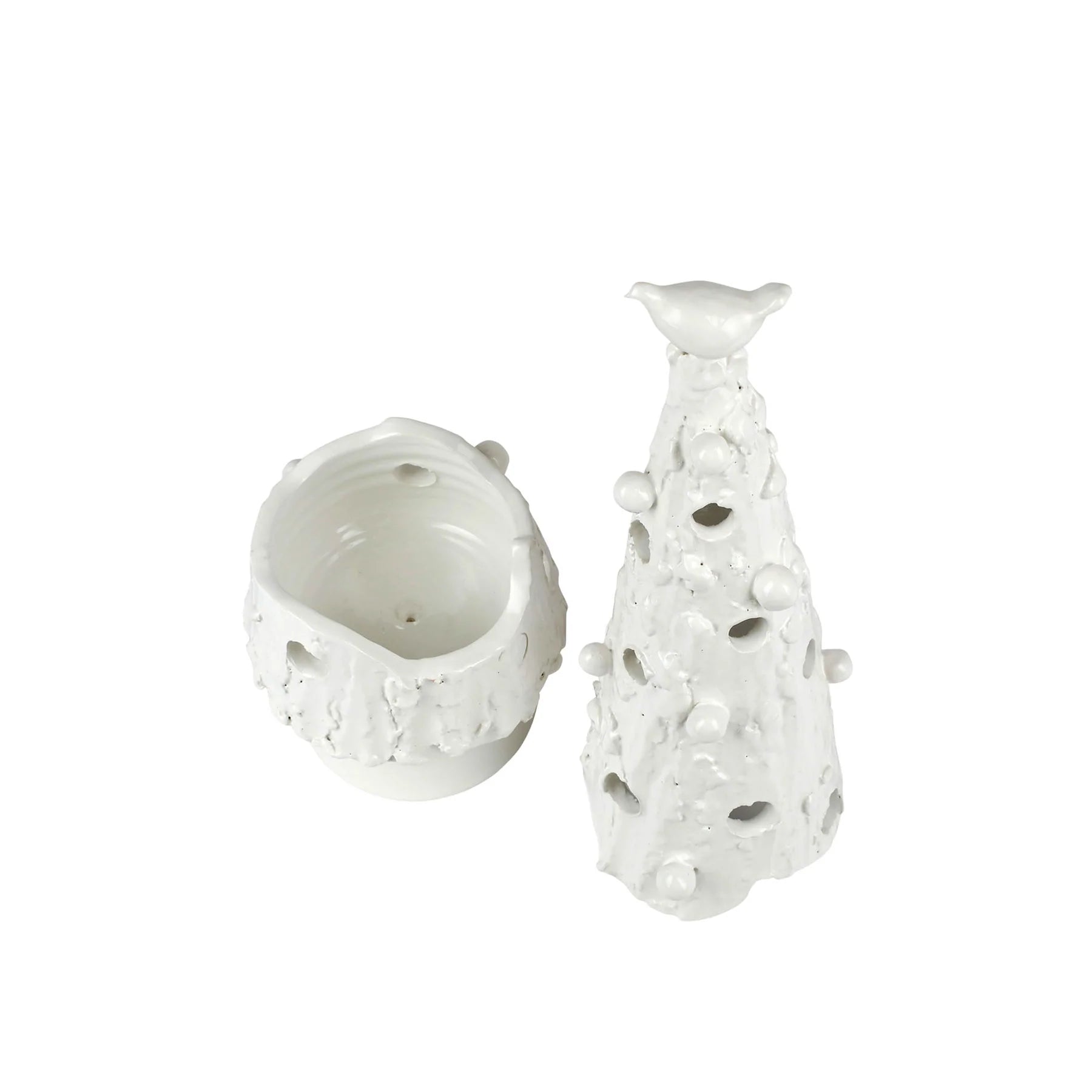 Vietri Foresta White Large Flocked Tree with Red Bird